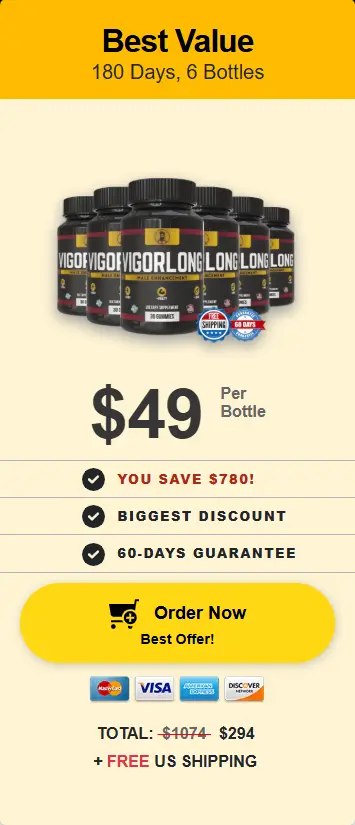 We believe you’re ready to take the next step with VigorLong. To begin your order, simply click on your preferred option below. Enter your details on the following page to complete your purchase, and then sit back and relax. Our dedicated team will handle the rest, ensuring your order is packed and shipped to your door in just a few days.